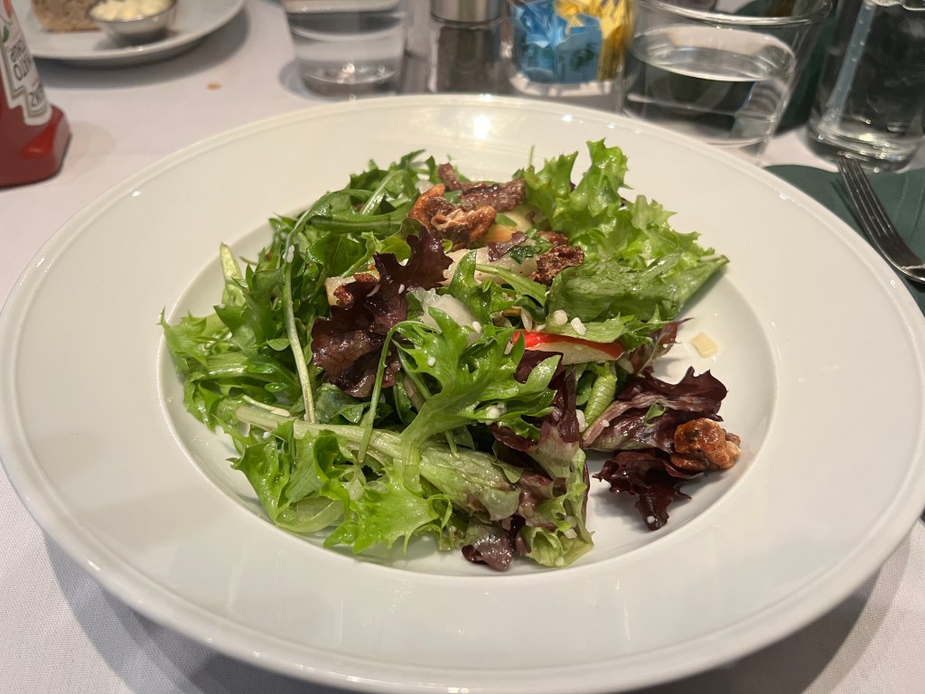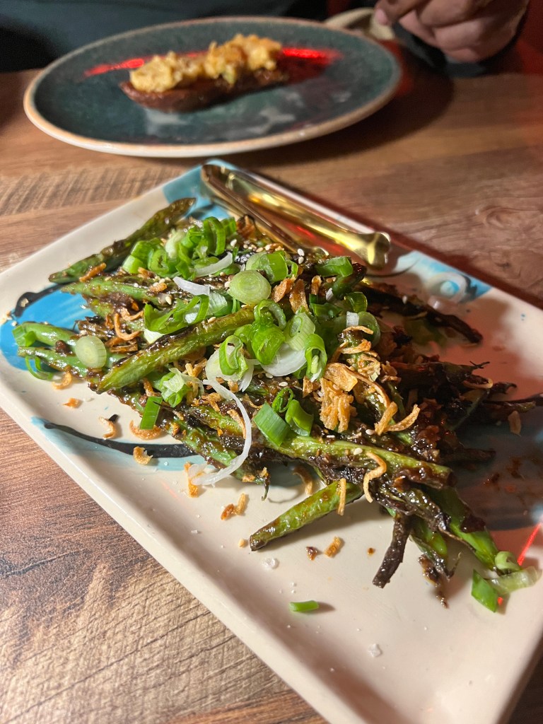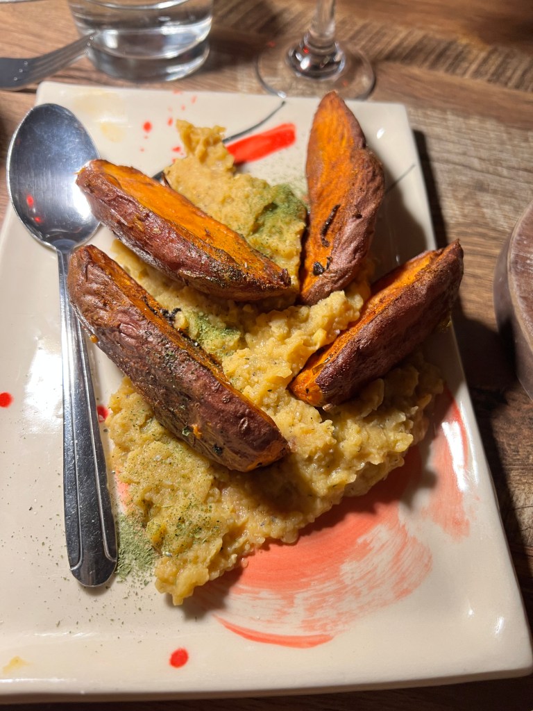 After a rest in our hotel, we headed out to dinner at the Compass Rose, a delightfully eclectic smorgasbord of food from all over the world. We tried Khachapuri (a Georgian cheesy bread boat), Chinese Five Spice Chicken and Potatoes in a bag (called a Spice Bag, an Irish dish), Szechuan Green Beans, Kofta (meatballs), and Berbere Spiced Yams served over lentils. Everything was delicious, but m favorites were the Khachapuri and the green beans (they were just spicy enough). They had delightful cocktails and mocktails–I especially loved my zero proof margarita. Though we were stuffed, we finished off with Coconut Mahalabia, a kind of coconut pudding, and Tres Leches. The coconut pudding was my favorite of the two. The menu changes somewhat, but many of these are still on it as of this writing (December 2024).