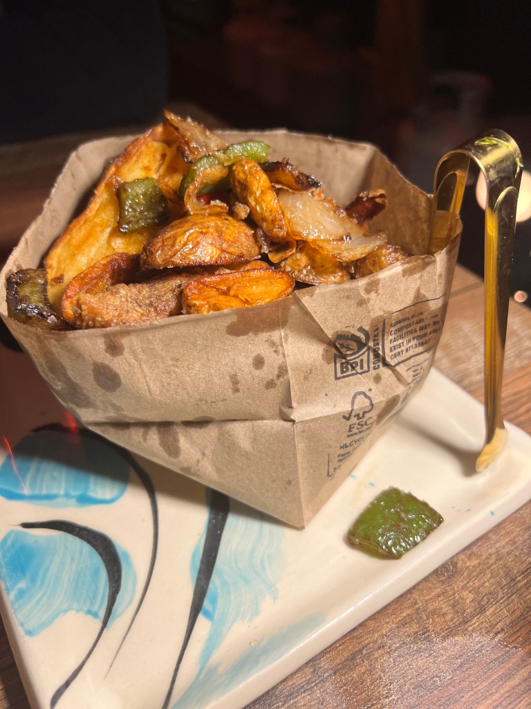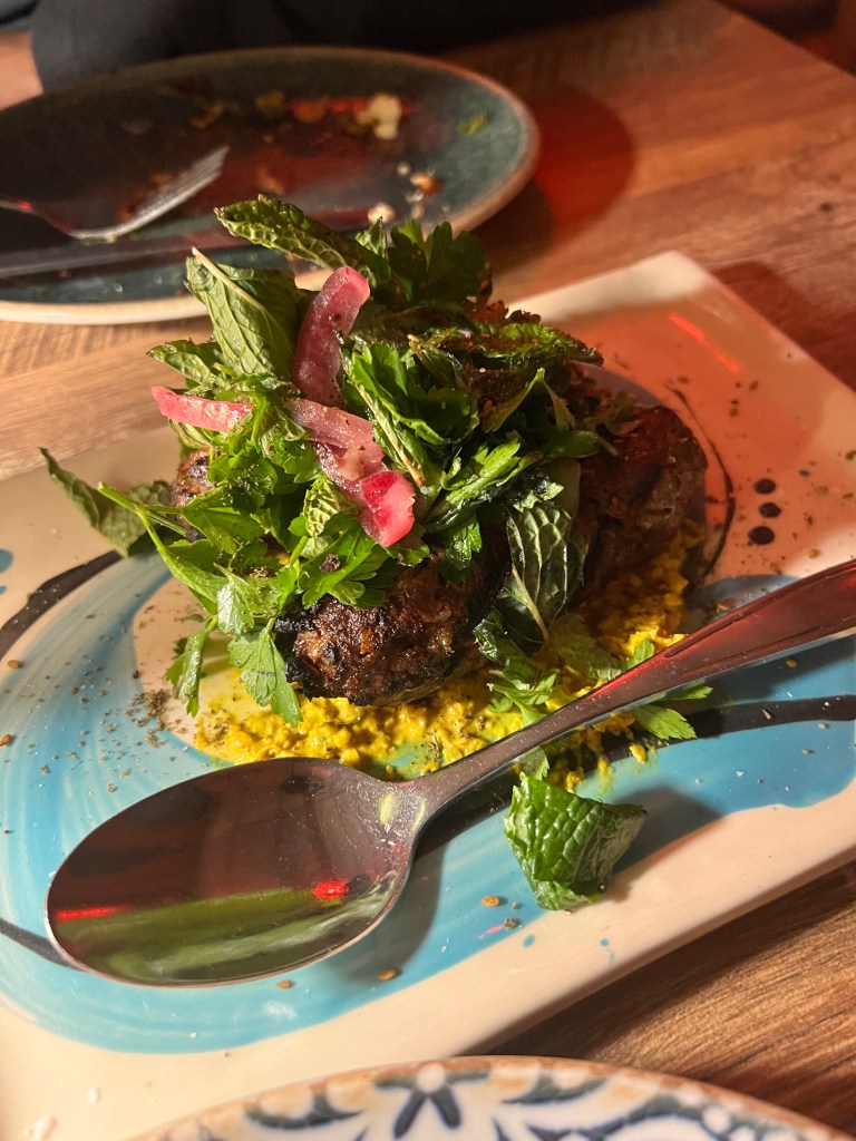 Overall, I found the Compass Rose to be one of the most inclusive places we ate, between the extensive mocktail offerings, vegetarian options, and accommodations (we needed our khachapuri egg-free, and they had no problem with that). We had booked a table indoors but it was not ready for us. It was super loud inside though, and we ended up in their cozy “train car” outside, which was plenty warm despite the cold outdoors, and much quieter. It was less of a sensory overload and more enjoyable, so I was grateful in the end for the swap. They even gave us a free round of drinks because of the inconvenience.