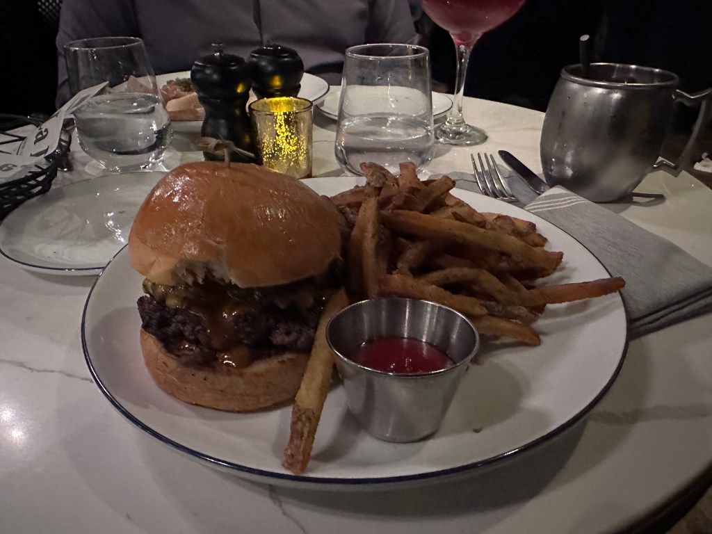 After all our walking, we were exhausted, but wanted to make the most of our trip, so we took a cab to Georgetown and enjoyed dinner at Brasserie Liberte, which featured French food and delightful mock and cocktails. This was another recommendation from a friend who’s been in DC for over a decade, and she did NOT miss with her suggestions. My husband enjoyed the steak tartare and I enjoyed their house burger and frites. The creme brulee was definitely the star of the show though! (and the seasonal tart was tasty too).